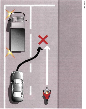 Развею миф: «внезапных столкновений» практически не бывает - аварию почти всегда можно предвидеть, если смотреть в нужном направлении и на нужный объект. Да, вокруг слишком много всего происходит одновременно. Отсюда совет: учитесь разделять потенциально опасные ситуации. Обнаружить признаки надвигающегося ДТП можно, равно как и предпринять предупредительные действия. Держите палец левой руки на кнопке звукового сигнала, а пальцы правой - на рычаге тормоза. Если этого не сделать, в экстренной ситуации, пока до него дотянетесь, понадобится полсекунды или даже больше. Полсекунды - совсем немного? Но за это время на ско¬рости 60 км/ч машинка проезжает 8-10 метров. Их хватит, чтобы врезаться в автомобиль. Ваш мозг должен постоянно выстраивать варианты на случаи неожиданностей - или экстренно затормозить или интенсивно ускориться, сманеврировать, протиснуться в щель между машинами...