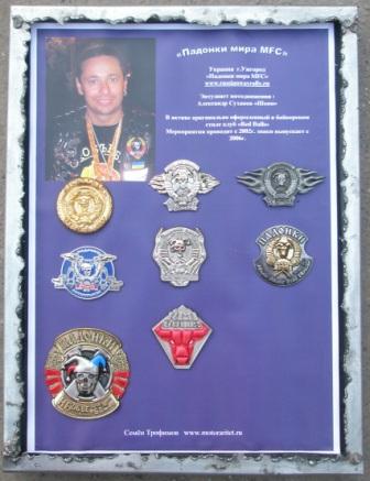 В апреле в Питере был самый большой мотосалон в России ИМИС 2012. Там я сделал вторую выставку байкерских знаков. (первую в феврале возил в Минск) Идея настолько всем понравилась, что даже вручили Гран При за вклад в развитие мотодвижения. Рамки со значками выглядят так: