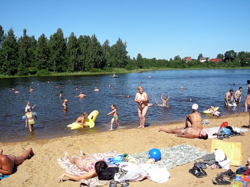 Нашли озеро с теплющей водой, не засранное, народу вечером немного, чистый песок, можно спокойно доехать на машине и на моте.