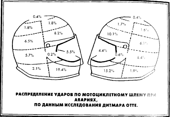 Статистика ударов на разные части шлема.